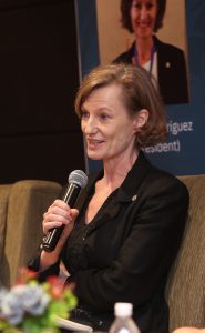 Bivša predsednica mednarodne zveze prevajalcev FIT (2022-2025), ki je v letu 2025 skupaj s člani Sveta FIT obiskala Slovenijo in v Ljubljani opravila tretje letno zasedanje v triletnem mandatu, je nastopila tudi na Mednarodnem forumu o prevajanju in tolmačenju 2025 (glej YouTube). Nadaljevala bo rdečo nit foruma »Moč besede in inteligentna prihodnost« iz leta 2025 in jo povezala s pravom človekovih pravic in prevajanjem.